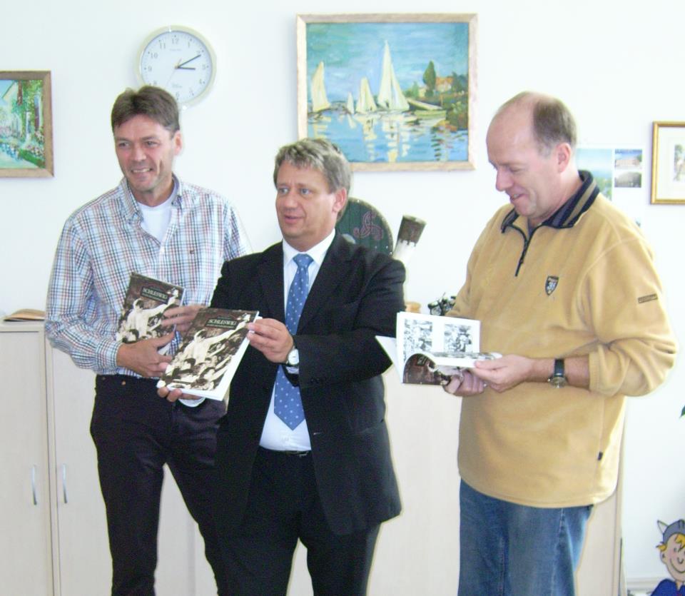Und am Tag, als der Papst kam, fotografierte der Admin im Amtszimmer des Bürgermeisters Kai Christensen (zu seiner Rechten) und Jens Petersen (zu seiner Linken) in einer kurzfristigen Rolle als rasender Reporter. Es ging natürlich um dieses Buch…