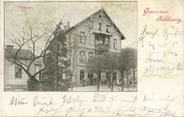 Jochen: das steht oberhalb der alten Stampfmühle; Bilder gibt’s bei Sönke in der Alten Schleihalle (Admin: s. links – das Haus ist wohl längst abgerissen)
