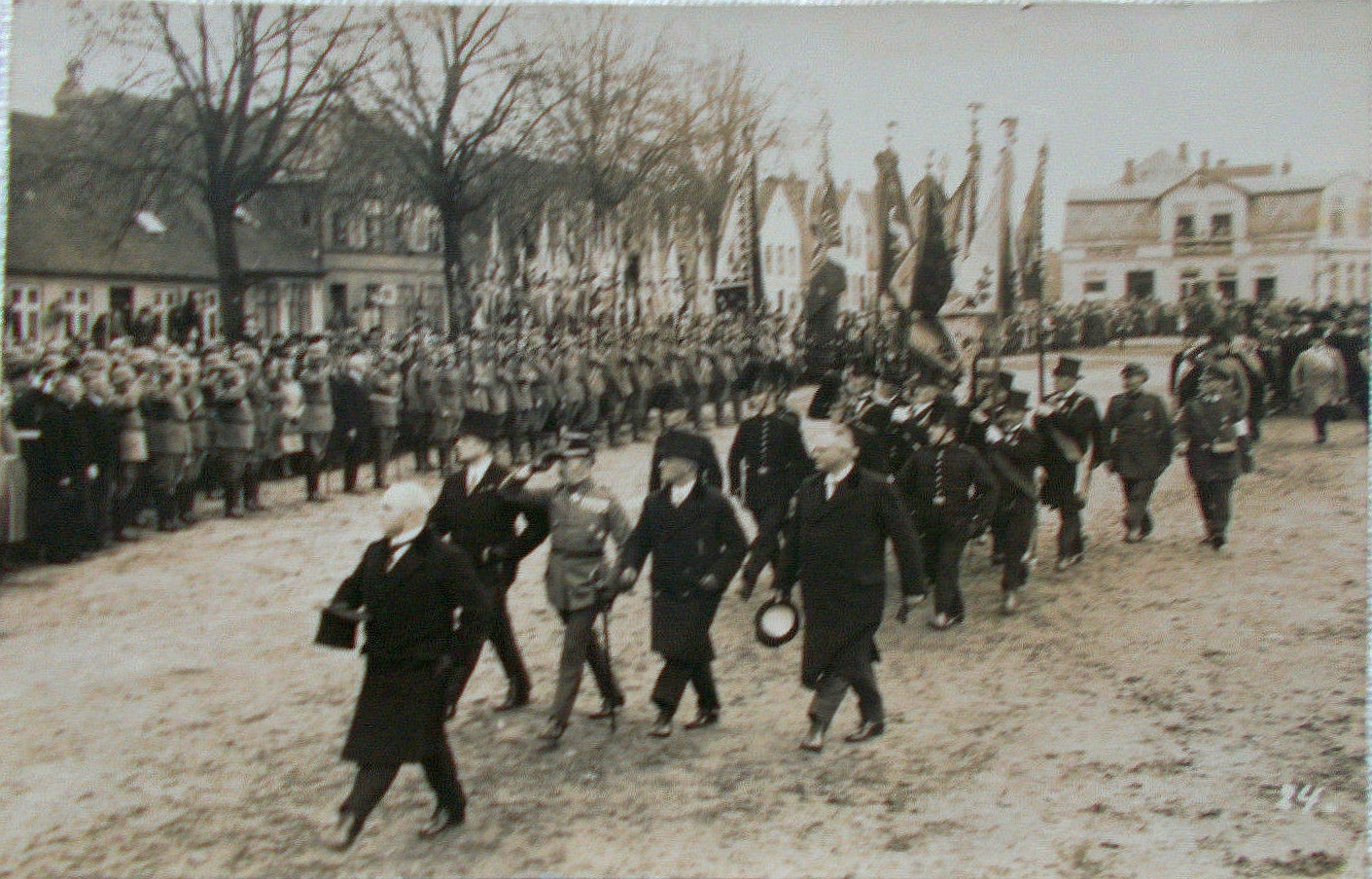 einordnen kann ich das Geschehen leider nicht (Versuch: ca. 1925), einen Hinweis zum Begriff „Stechschritt“ biete ich aber an.
