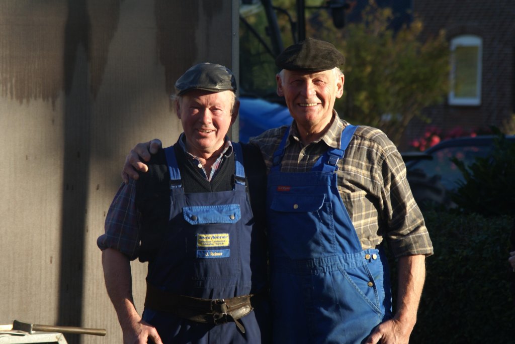 Links: Johannes Reimer, Schmiedemeister in Steinberg, geboren in Brodersby. Rechts: Gerd Reimer; Schmiedemeister in Brodersby, geboren in Brodersby.