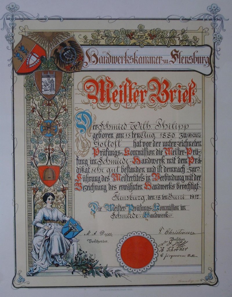 Karl-Heinz Philipp hat dem „Klassentreffen“ eine „Chronik der Familie Philipp“ (auf CD) geschickt. Man liest auf 83 Seiten, dass die Familie Philipp die Schmiede und den Hufbeschlag in Angeln und Schwansen seit der Mitte des 19. Jahrhunderts mitbestimmt hat. Aus dieser Dokumentation habe ich einige der