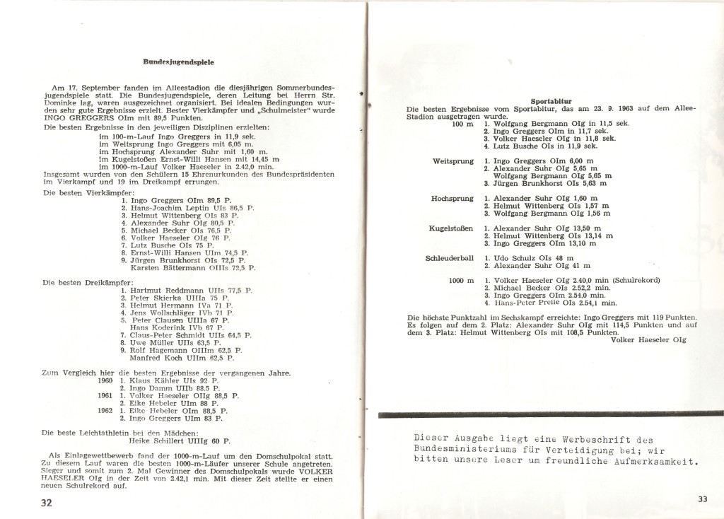 Wolfhard Sendel, U I g – Ergebnisse des Sportfestes beim 650jährigen Jubiläum der Domschule