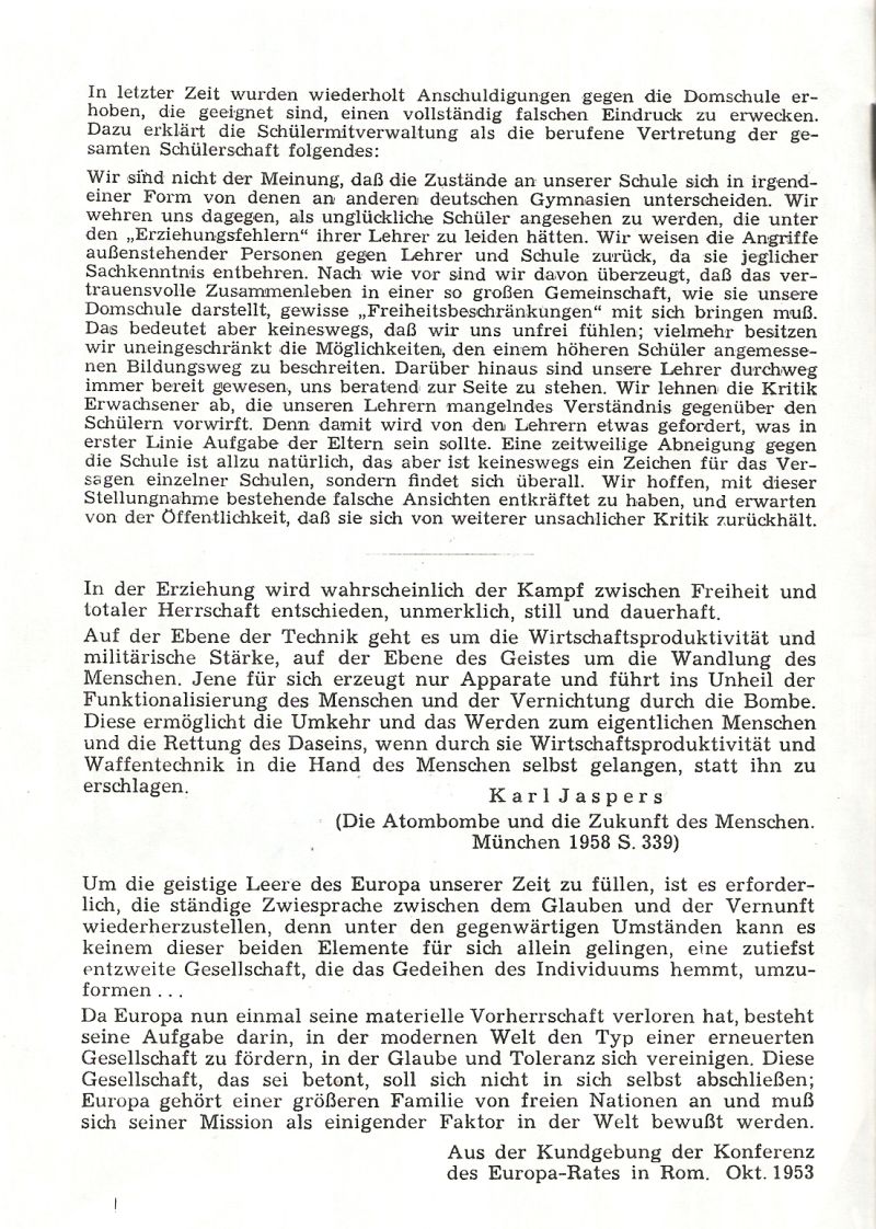 Redaktion(?) – Aus dem Schulleben (Chronik von 1/58 – 3/58)