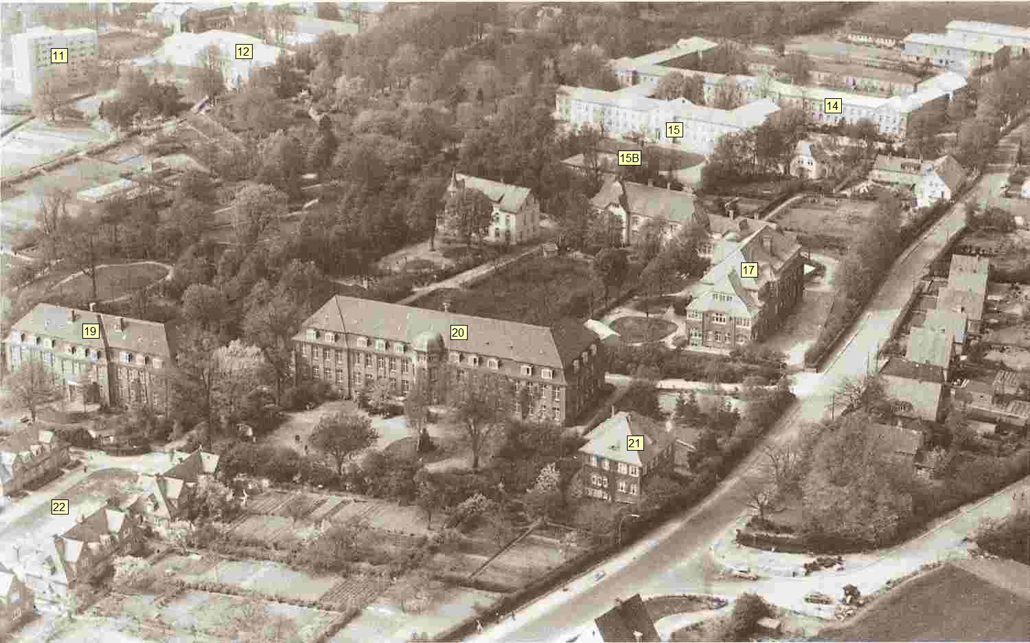Jürgen Brandt: das könnte das Haus T sein, Nr 20 auf dem Bild „Anstalt-vonoben-mit-tags“