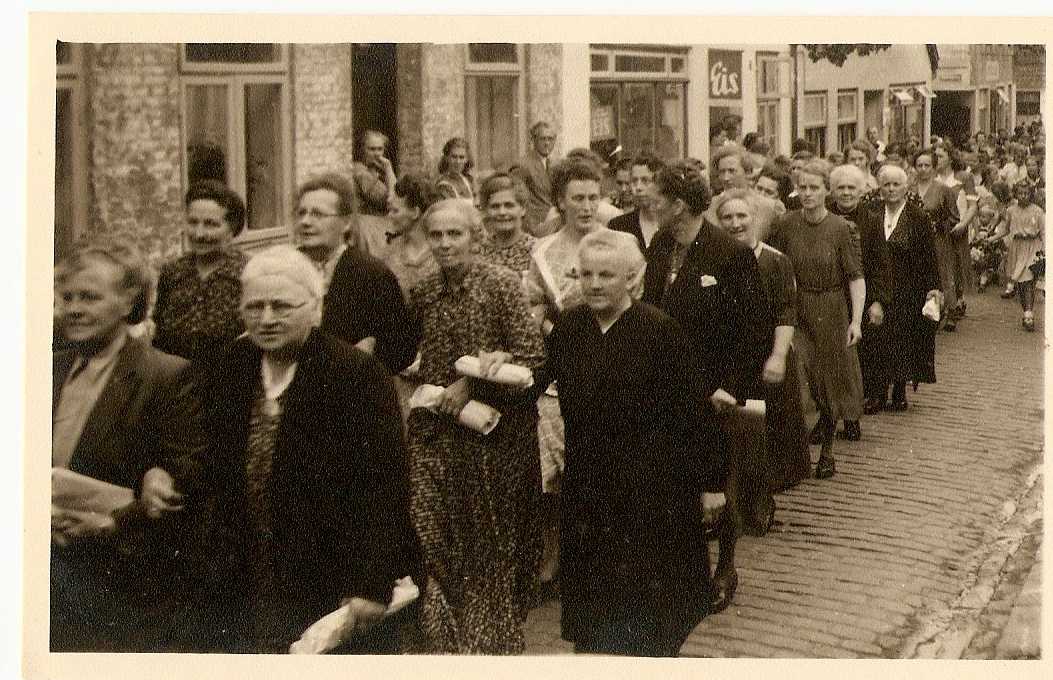Hier haben wir jetzt ein Foto des Umzugs der Kranzbinderinnen bei der 300. Feier der Holmer Beliebung.