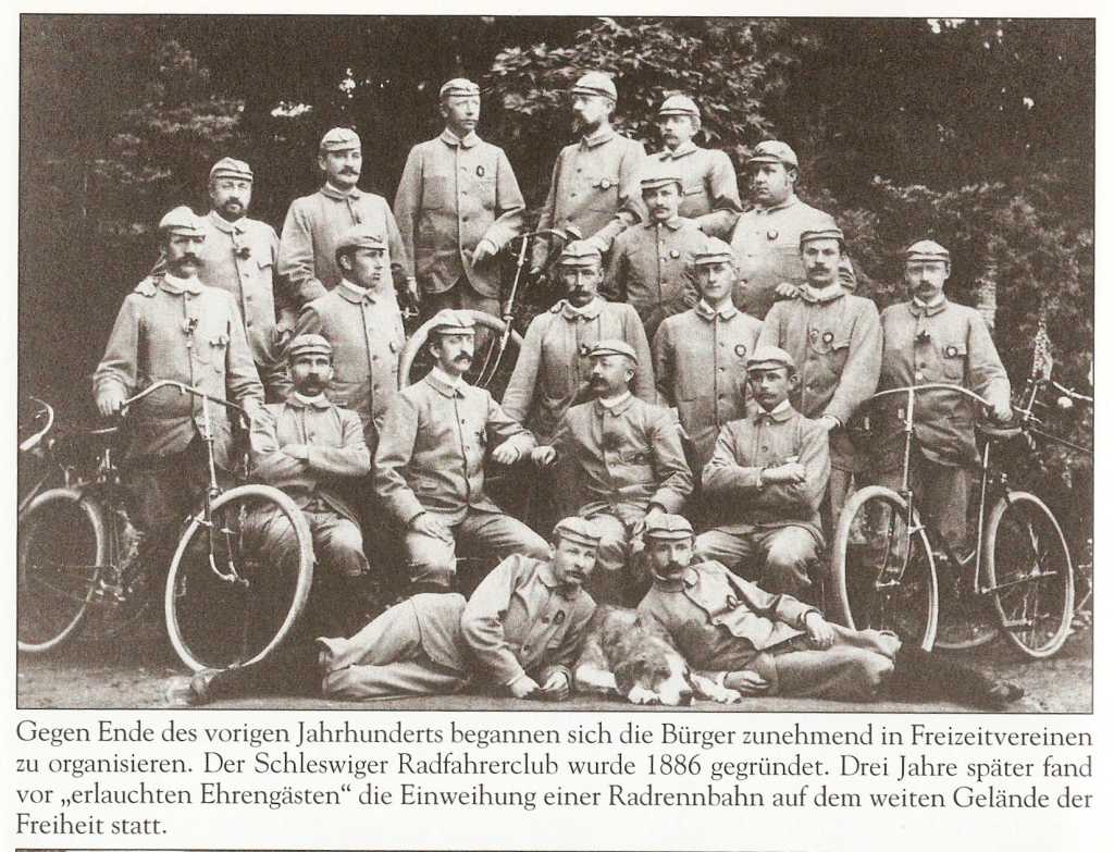 Im Jahr 1898 stellt der Gau 180 Mark für zwei Bahnwettfahrten in den Etat, da der Schleswiger Radfahrerverein auf der Freiheit beim St. Johanniskloster die erste Rennbahn im Gau gebaut hat.