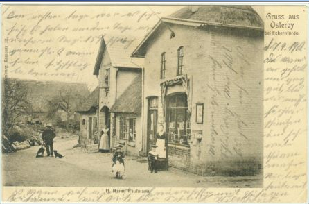 Norbert: Hier die entsprechenden Bilder, wie es heute aussieht. Den Kaufmann gibt es heute noch, natürellement modernisiert. Die Reetdachkate wurde verputzt und mit Hartdach versehen, die Osterbek wurde an der Stelle als Pferdewaschplatz benutzt. So wurde mir von den Ureinwohnern erzählt. Irgendwann wurde sie in ein engeres Bett gezwängt, wie leider Gottes viele Gewässer. Außerhalb des Dorfes wurde sie schon für viel Geld an einigen Stellen renaturiert.