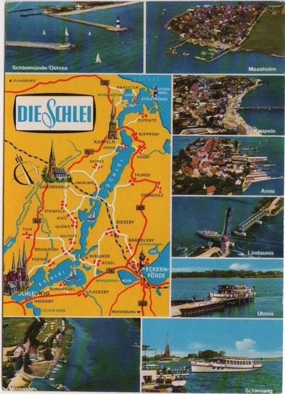 Torsten: Also (Segel-)Boote im Vordergrund… Sieht irgendwie städtisch aus, mit den Häusern (Schleswig?, Kappeln? – oder vielleicht Arnis?) Admin: einer der Vorschläge ist richtig!