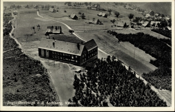 Rechts die Jugendherberge Aschberg, in der die Laienspieler mit Hans-Werner Jürgensen (und Hanns Mieschendahl – von dem das Foto ist!) in den 50ern freizeiteten.