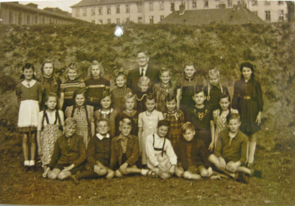 Auf dem Zeugnis hat ein Klassenlehrer Hasse unterschrieben und auf den beiden Klassenfotos von 1949 und 1950 sind Klassenlehrer zu sehen. Vielleicht erkennt ja einer unserer Bugenhagenschüler den Lehrer Hasse?