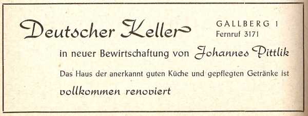 ich denke dass einige aus unserem Kreis von dieser Zeit (kreativ gelebte Zeit) der 50/60er Jahre mit Lust und Gefallen berichten könnten, so spreche ich kurz „Supergastrom“ Erwin Thom in der Passage an, bei dem wir telefonisch anfragten, ob wir mit einer „Reisegesellschaft“ von ca. 300 Personen seine in der Republik bekannte Erbsensuppe bestellen könnten (kein wirtschaftlicher Schaden!)bekanntlich hatte „Erwin“ 5 Tische mit maximal 15 Stühlen.