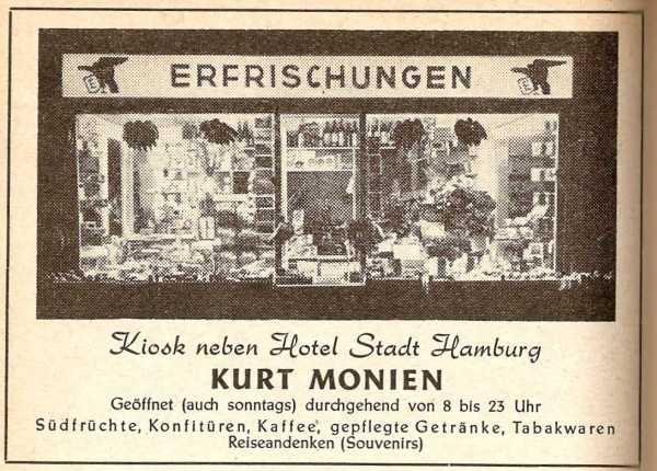 Herr Ad.: Ja aber warum denn, mein lieber Holger, schreibt der Herr Monien in die Anzeige „Kiosk neben Hotel Stadt Hamburg“??? Dös find ich jetzt aber saudumm ;)