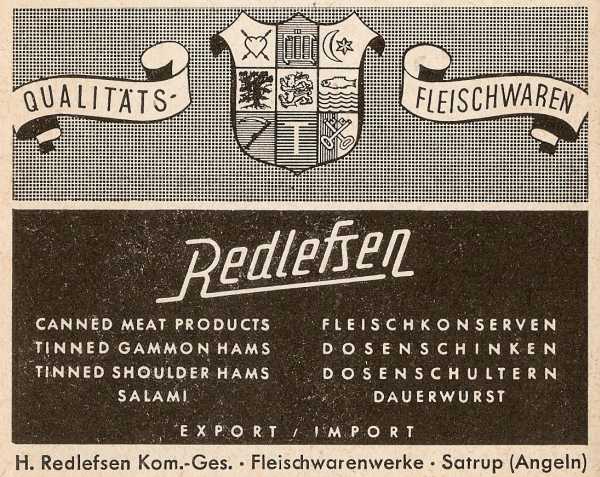 Seite 214; zu Artikel „H.Redlefsen Kom.-Ges., Fleischwaren-Werke, Satrup“