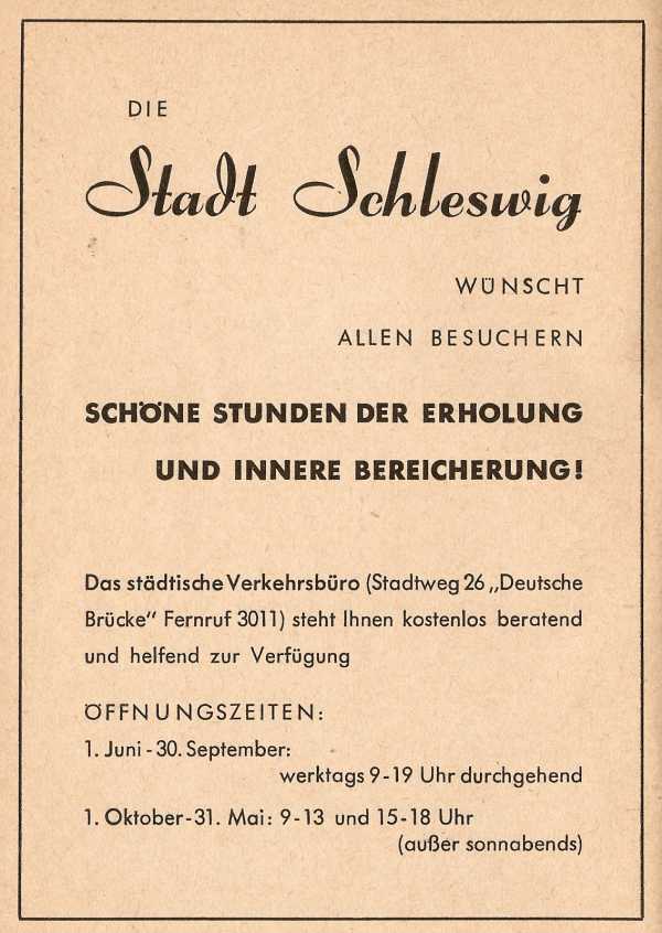 Es ist ein Führer für Besucher der Stadt Schleswig, versammelt aber auch viele Anzeigen von Gewerbetreibenden und Firmen aus dem Jahr 1955.