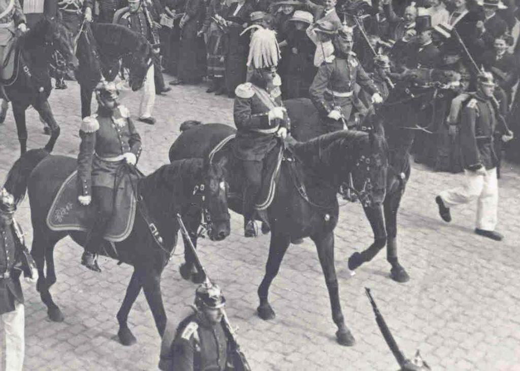 herausfinden. Auf dem Foto links habe ich mal den „Anführer“ der Parade herauskopiert. Wilhelm II kann es nicht sein, der war schlanker…