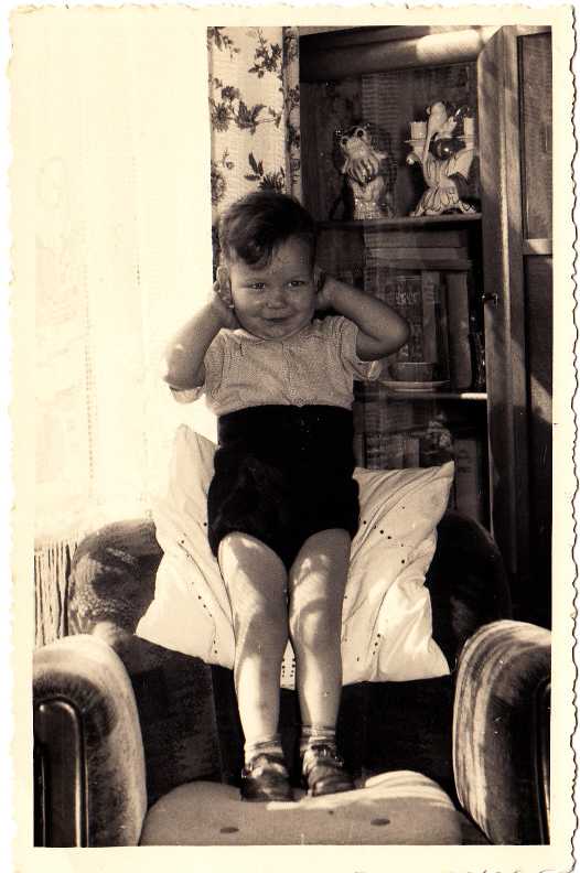 Der Klubsessel paßt in die 40er – 50er Jahre und die Bleyle-Hose auch.